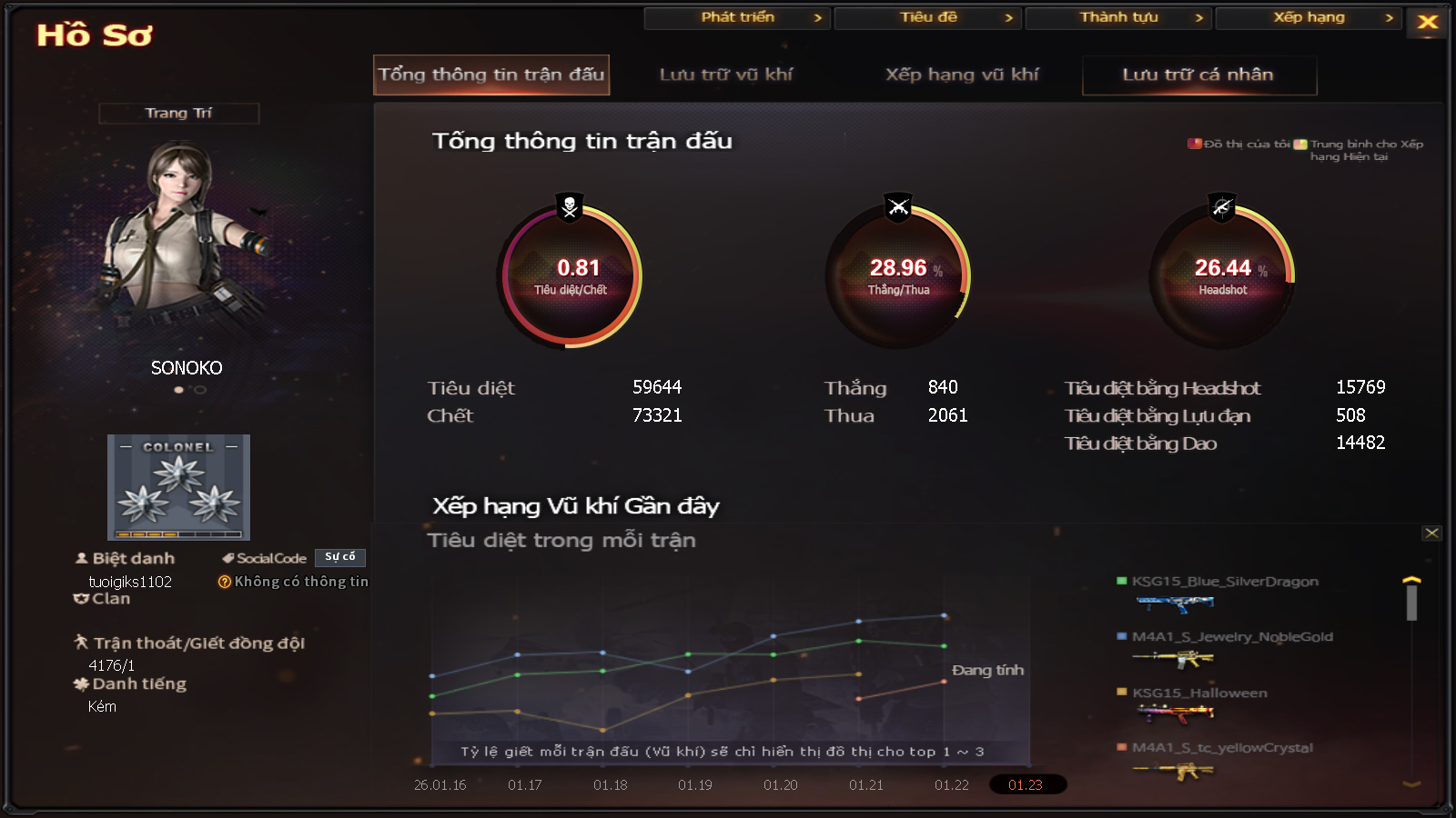 Hình ảnh chi tiết của tài khoản